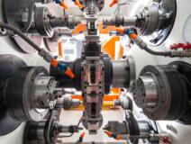 Transfer machine completely overhauled with 14 units, 6 stations and 3 working axis. This machine has a robot for the loading and unloading of your parts.
