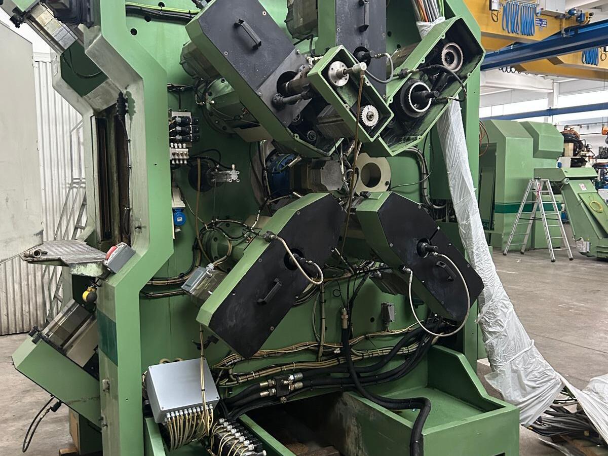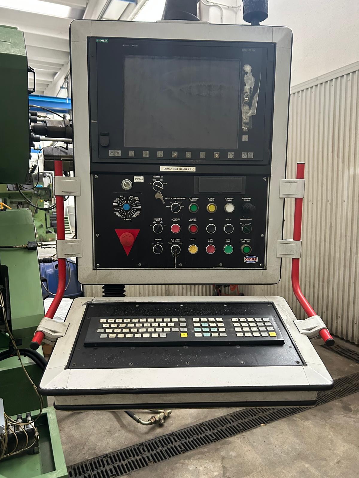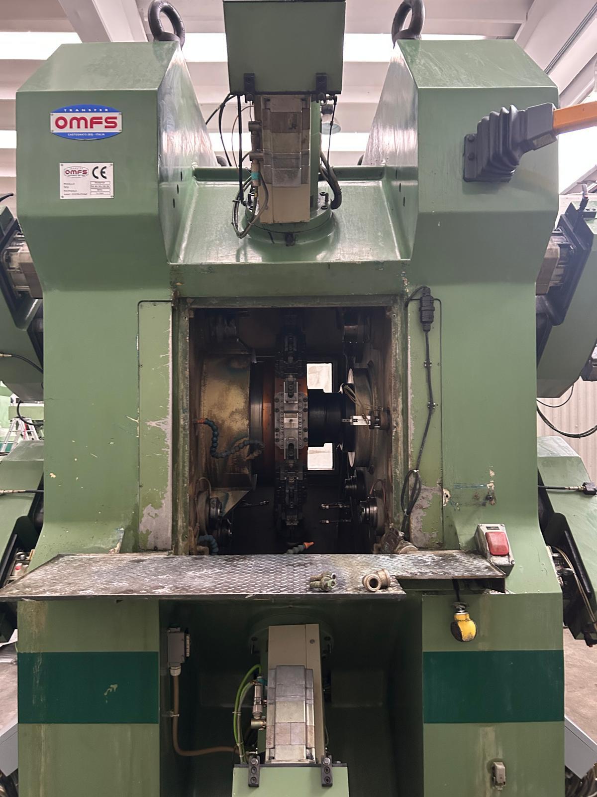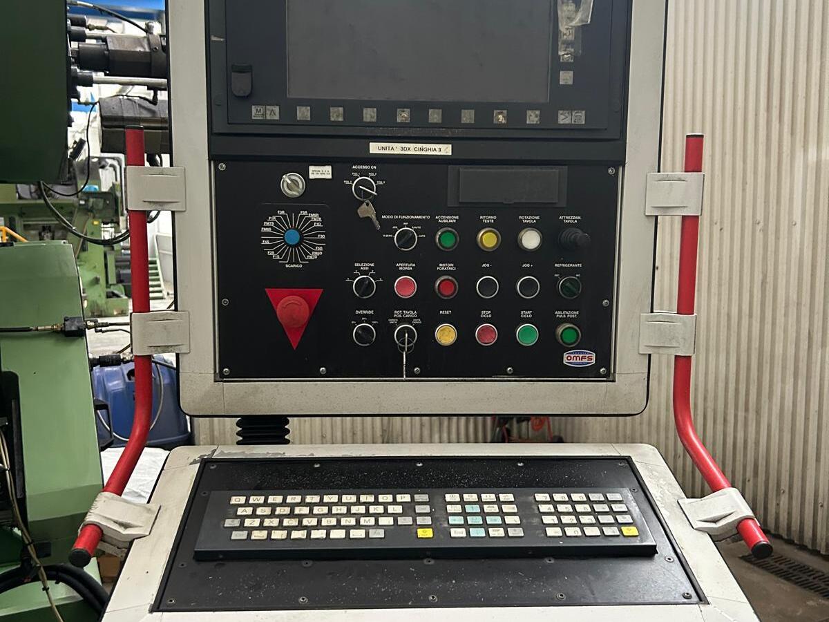 Transfer machine OMFS with horizontal axis table, 15 working units ISO 40 and 8 stations. Suitable to work 3 ways parts.