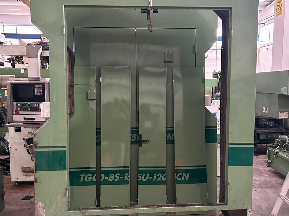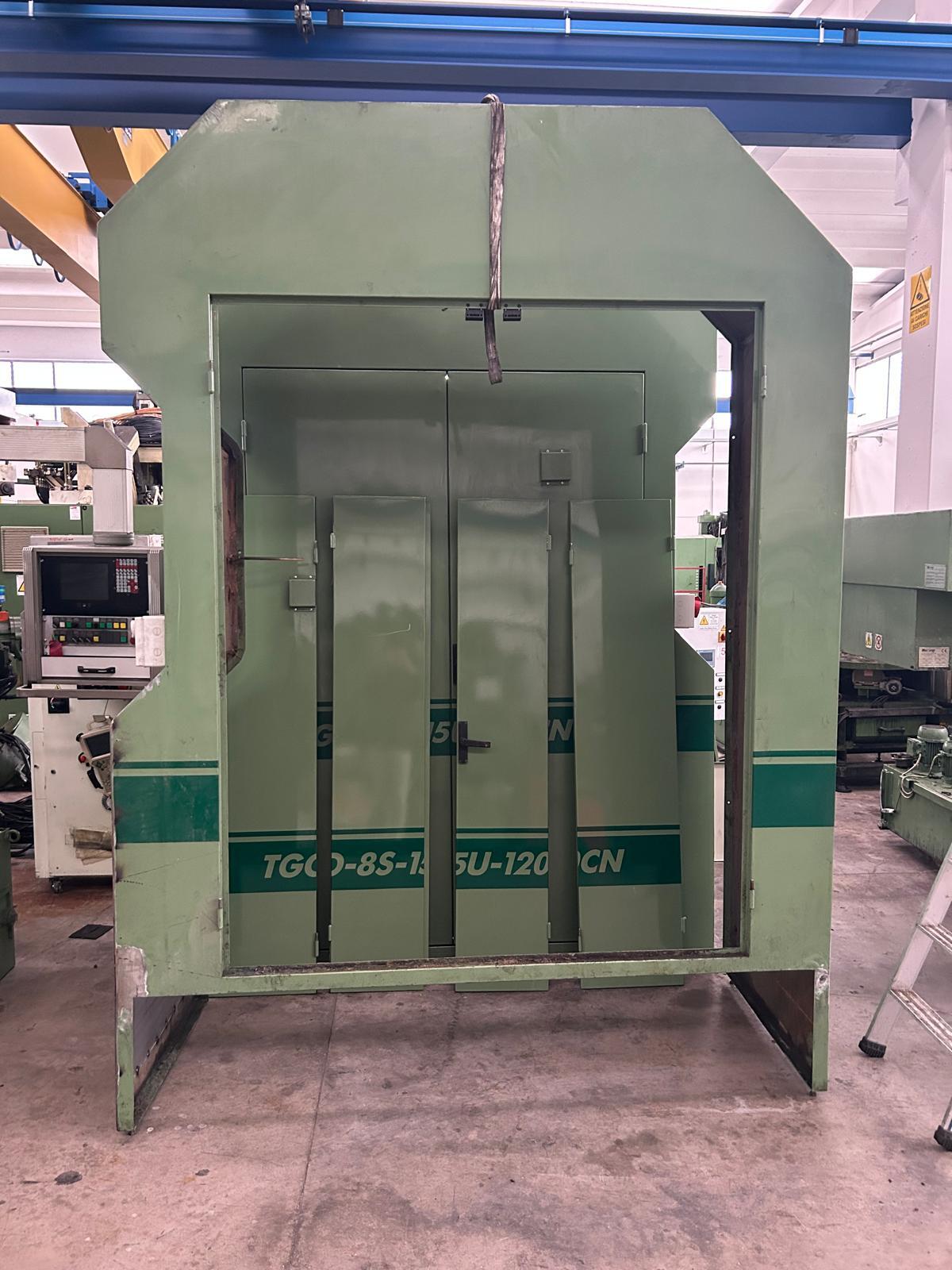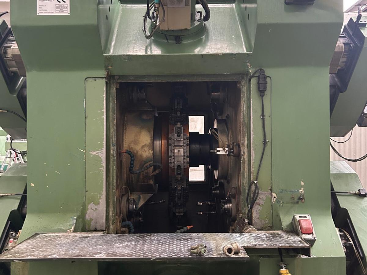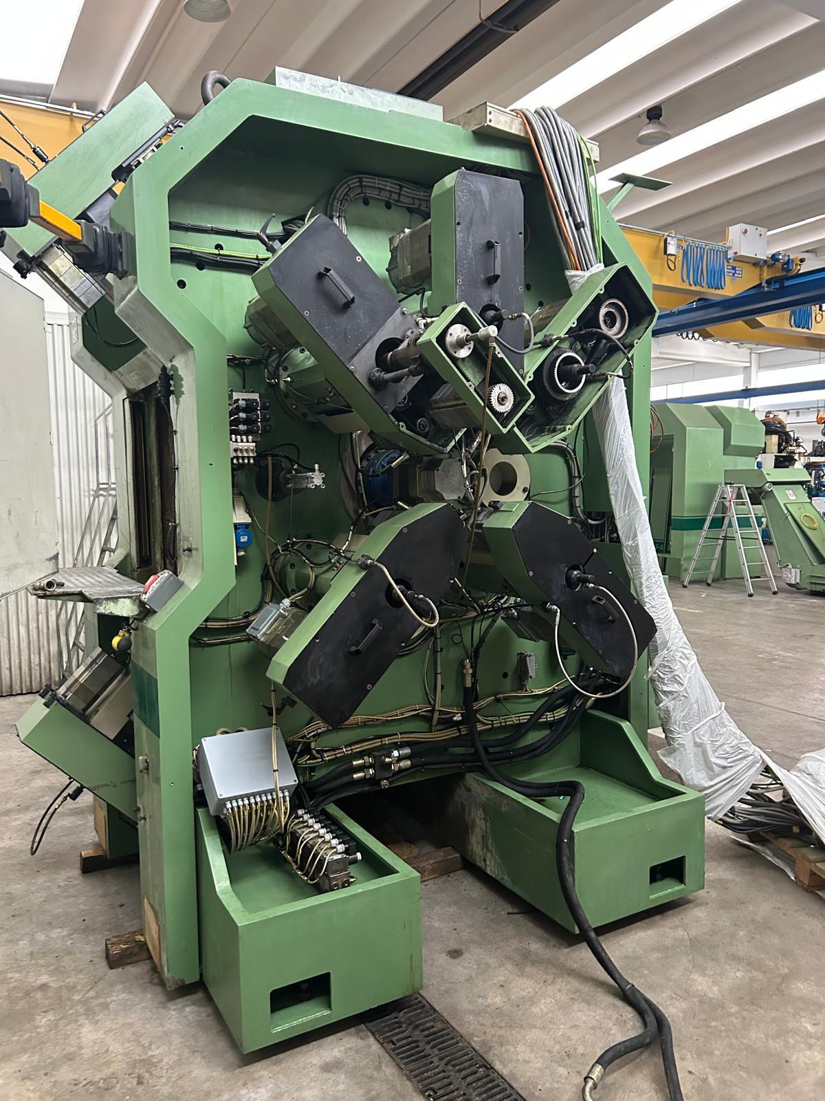 Transfer machine OMFS with horizontal axis table, 15 working units ISO 40 and 8 stations. Suitable to work 3 ways parts.
