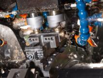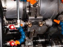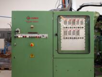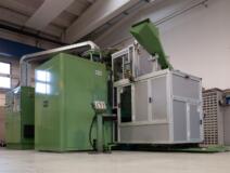 Transfer Gnutti parzialmente revisionato con 9 stazioni, con carico e scarico automatici e tazza vibrante. Lavora raccordi a L, 2 pezzi per volta.
